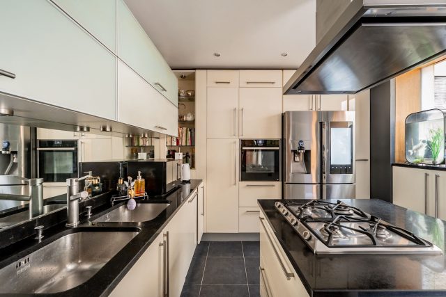 Un jardin de 75m2 à l’abris des regards donnant sur une belle entrée, un espace salon donnant sur une terrasse légèrement surélevée, une salle à manger, une cuisine semi-ouverte.
