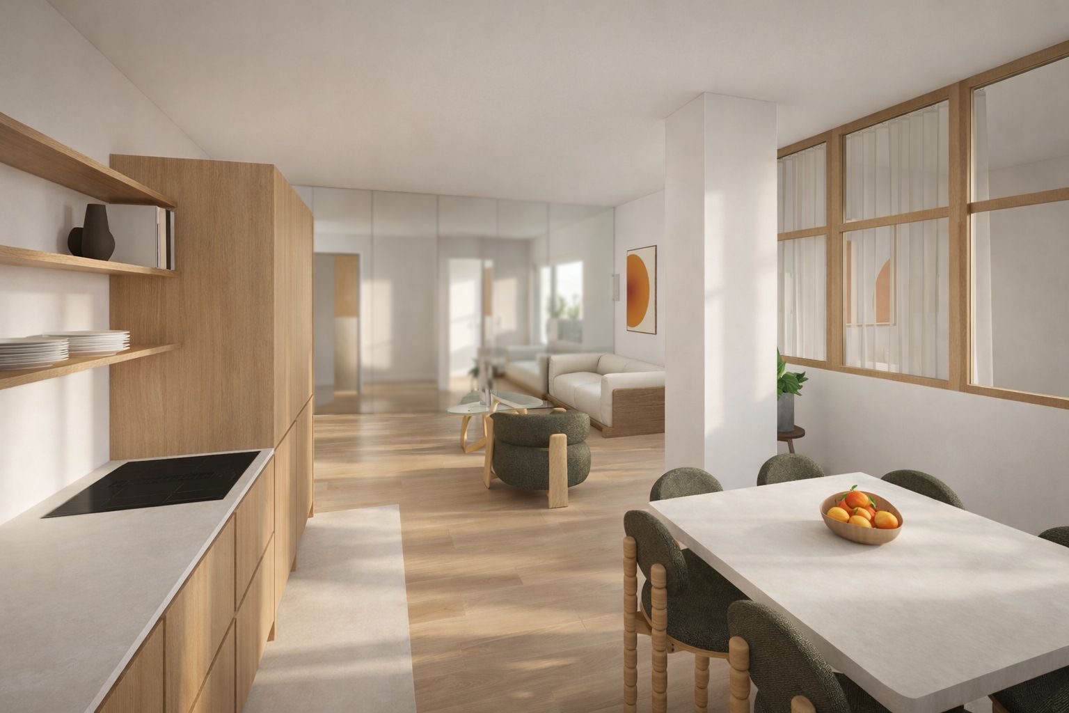 L’appartement a été entièrement rénové avec des matériaux premium.