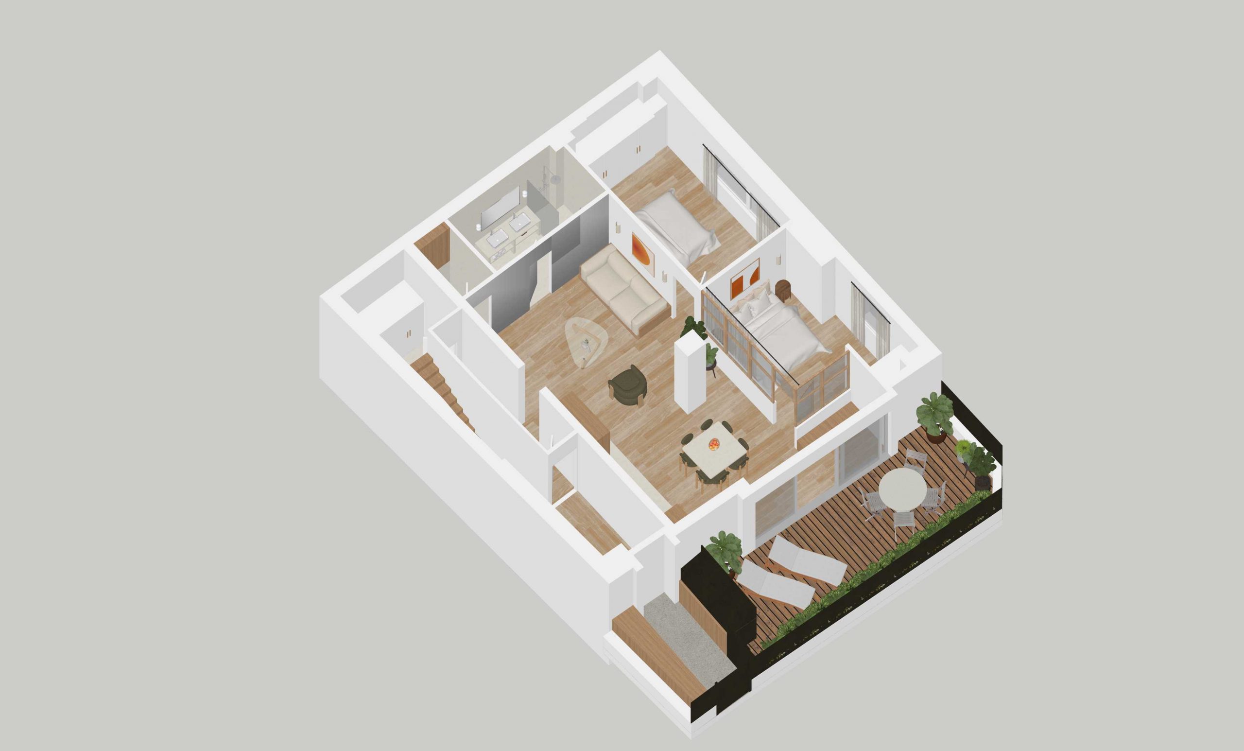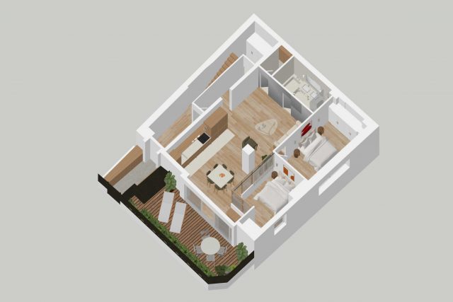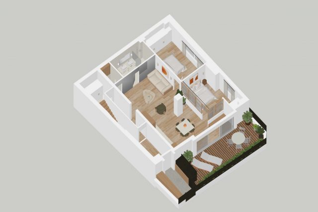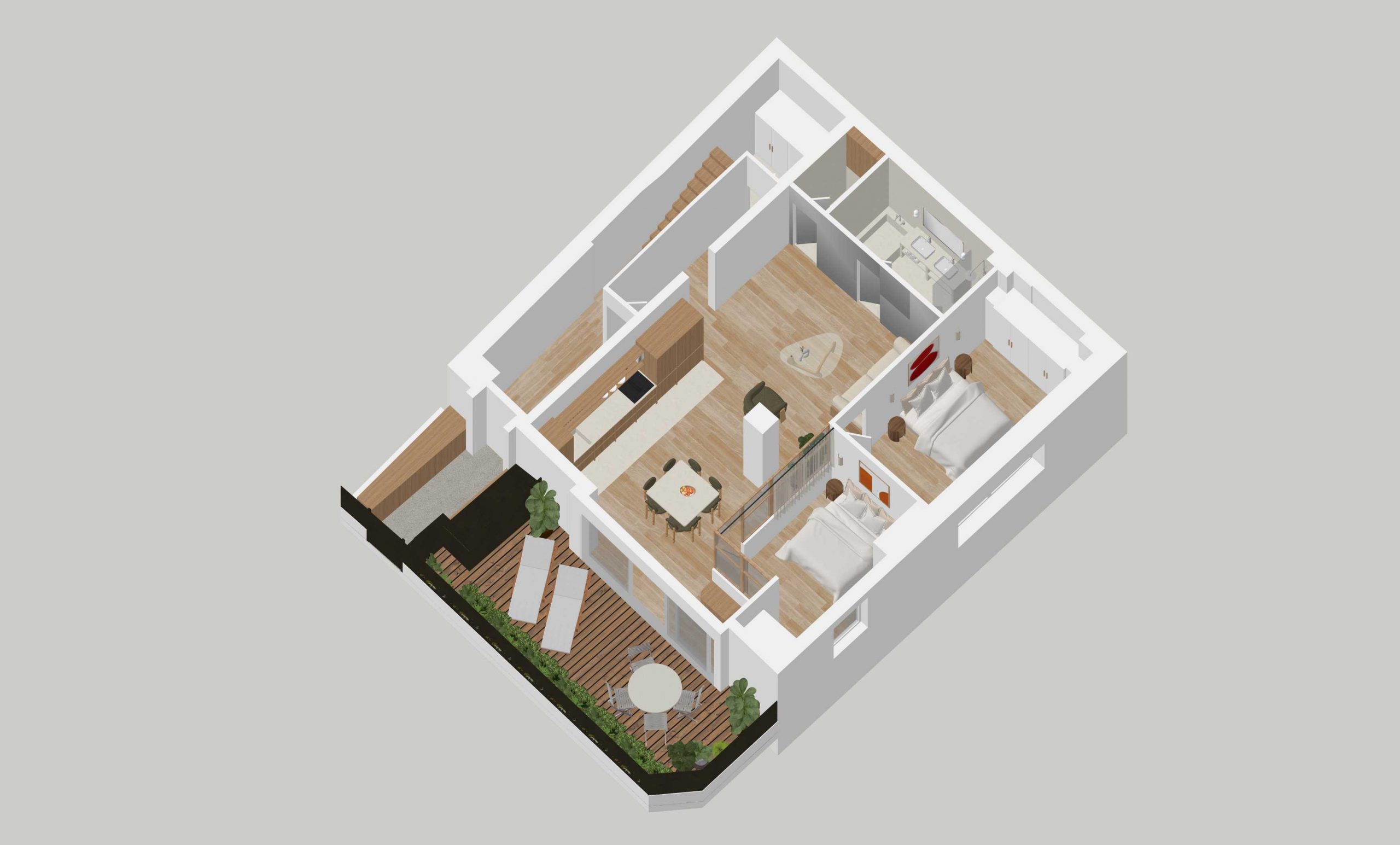 Il se compose d’une entrée, d’un espace buanderie, d’un double séjour ouvrant sur une belle terrasse végétalisée exposée sud-ouest, au calme absolu, d’une salle de douche, de WC séparés, ainsi que de deux chambres.